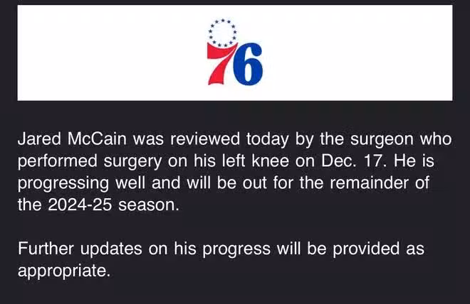 麥凱恩本來是今年最佳新秀的大熱門,他場均25分鐘能砍下15.3分2.6助攻0.7搶斷,賽季報銷後,76人少了一個場均15分的高效得分手,這讓本來進攻效率僅排在聯盟倒數第6的76人更加雪上加霜。