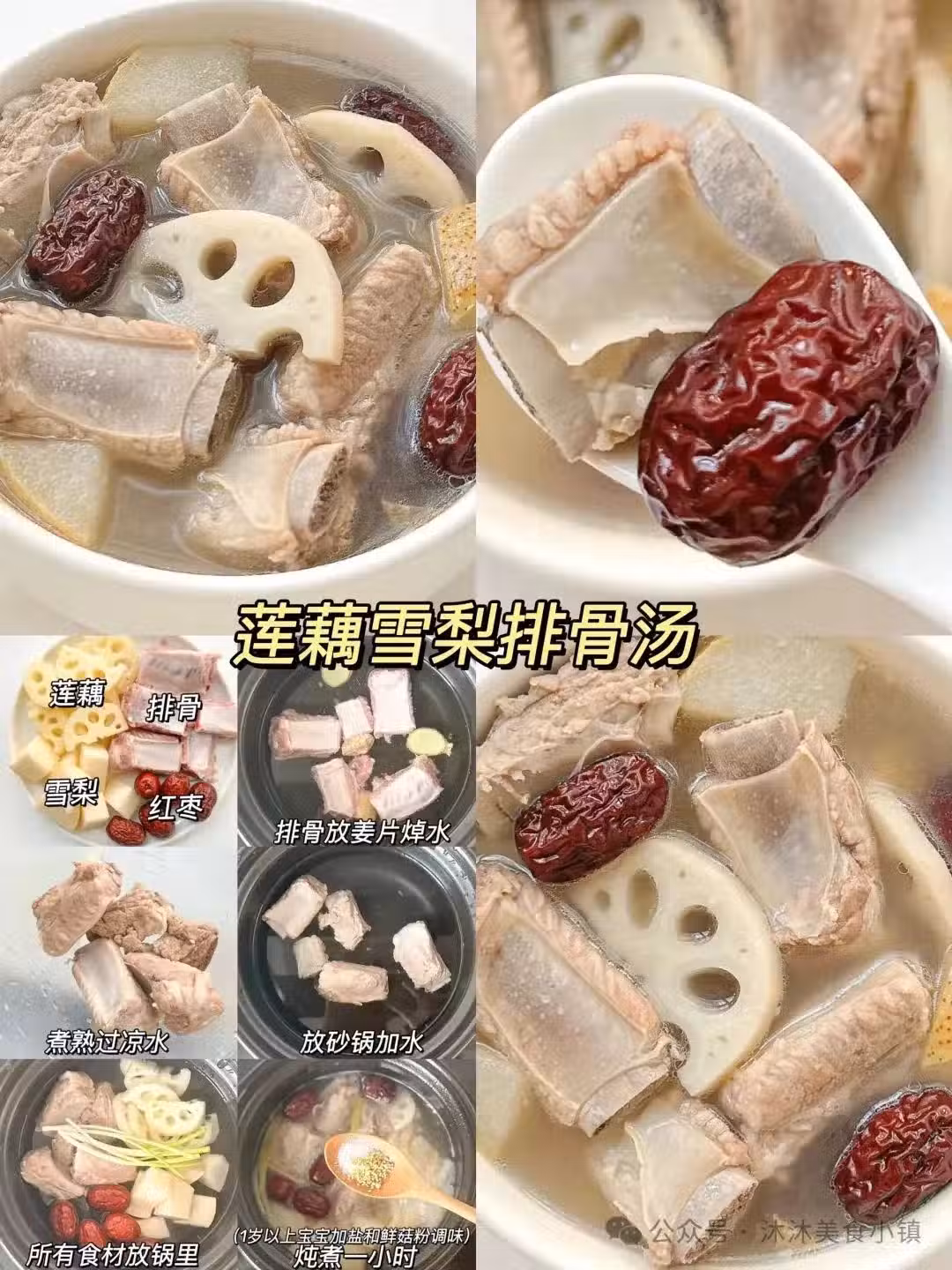 蓮藕的清脆和雪梨的甘甜,再加上排骨的鮮美,這款湯簡直是秋冬的清甜擔當。喝上一碗,感覺整個人都被清新的滋味包圍,心情都變得好好!