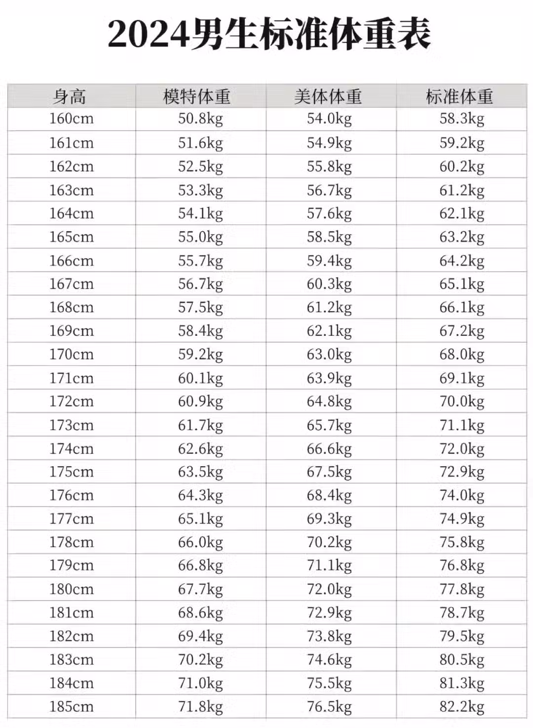 150到185cm男女標準體重對照表,也許你並不胖,別再焦慮了