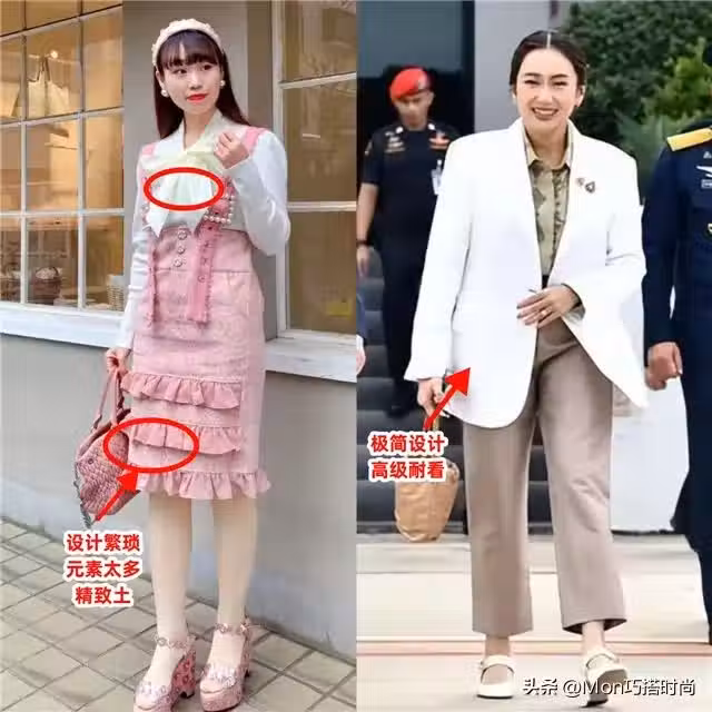 佩通坦的搭配技巧中,簡繁結合是一個重要的原則,她不會一昧地趕潮流,也不會只穿基礎款的服飾,反倒是很善於用簡單的單品搭配有設計感的內搭或者下裝,使得整體造型既有層次感又不失時尚感。