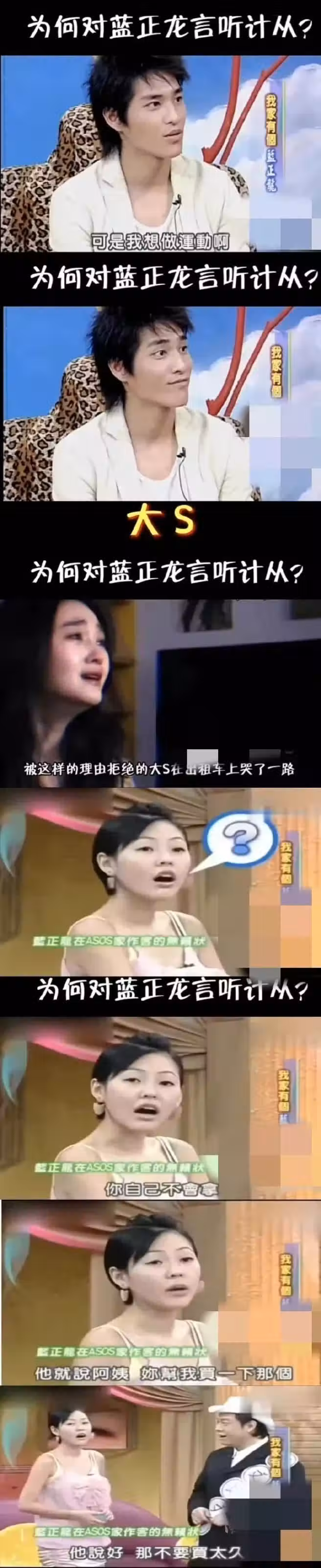 網傳,因為和大s分手,藍正龍被封殺4年。到現在,有記者採訪藍正龍,對前女友家事的看法,他還是扭頭就走。這麼多前男友里,藍正龍應該是最有性格的!天不怕地不怕的她,就怕藍正龍,不知道藍正龍什麼手段拿捏的她!
