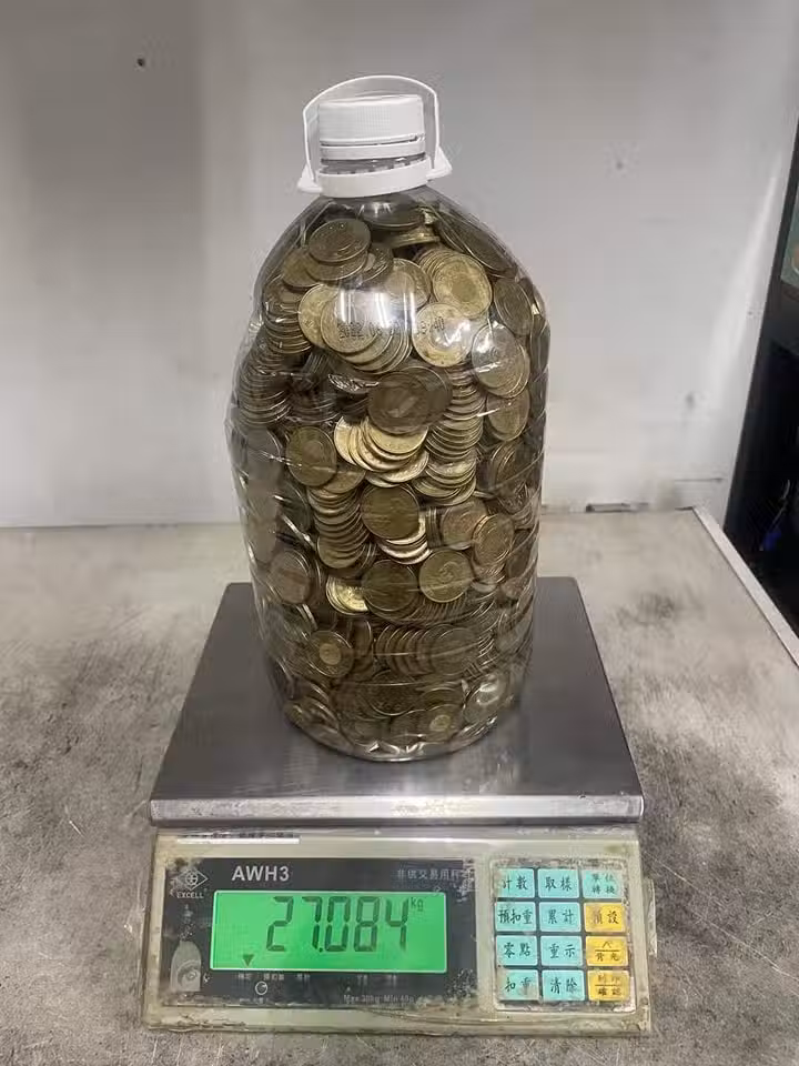 存了4大桶「50元硬幣」重達108公斤!總價值揭曉他驚訝:居然沒半枚是假的