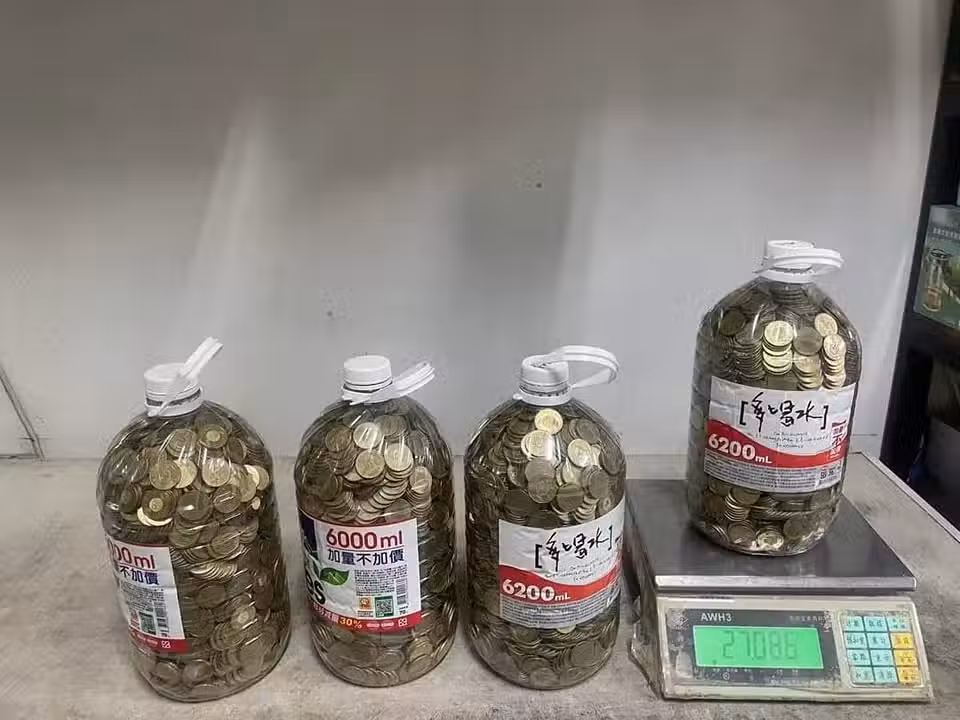 隨後他將這一罐罐的50元硬幣桶全都裝進塑膠袋裡扛去銀行,沒想到裡面竟有高達10797枚硬幣,總價值「53萬9850元」!金額簡直可以買下一台小轎車,最神奇的事裡面並沒有半枚假幣,甚至還是一名小資族整年的收入呢!