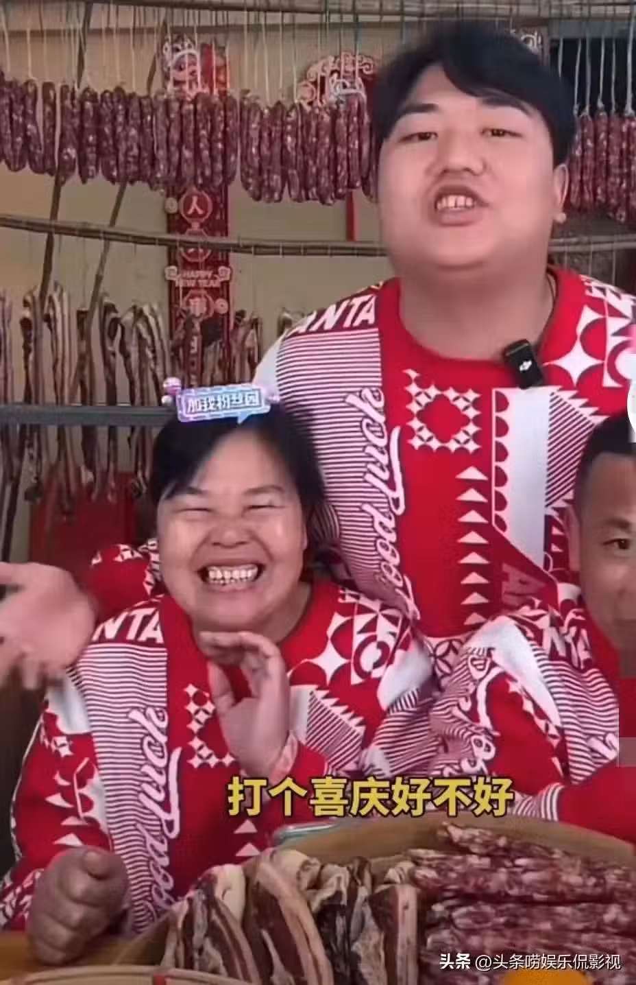 全紅嬋回家過年全爸全媽笑成眯眯眼一家人穿紅色親子裝喜慶又靚眼^^