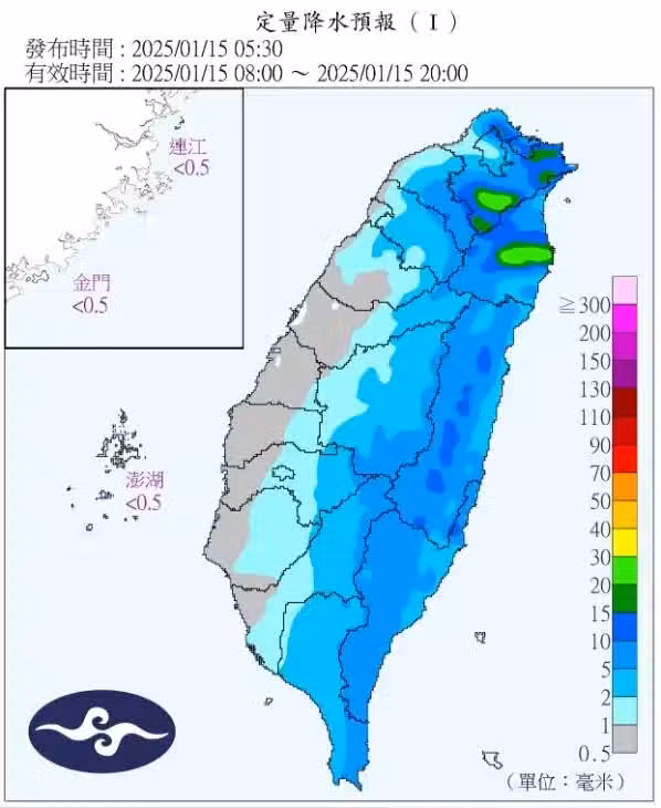 氣象署說,今日大陸冷氣團南下,迎風面北部及東半部有局部短暫雨,此外受到南方雲系北移影響,南部及中部山區有局部短暫雨,中部平地也有零星短暫雨。