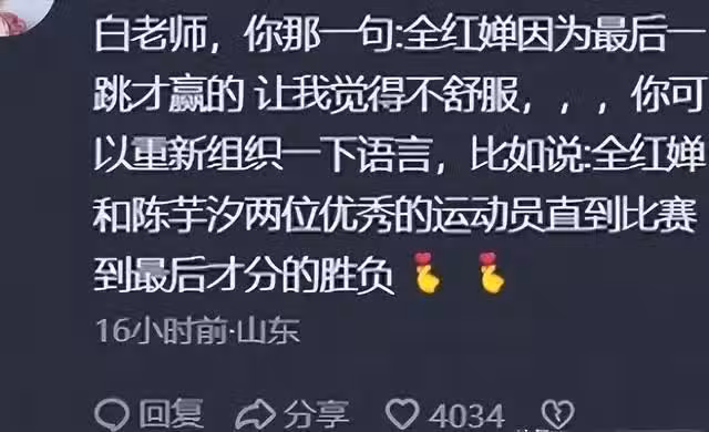 白岩松對全紅嬋的點評引起爭議:網友表示「聽來使人感覺不舒服」**