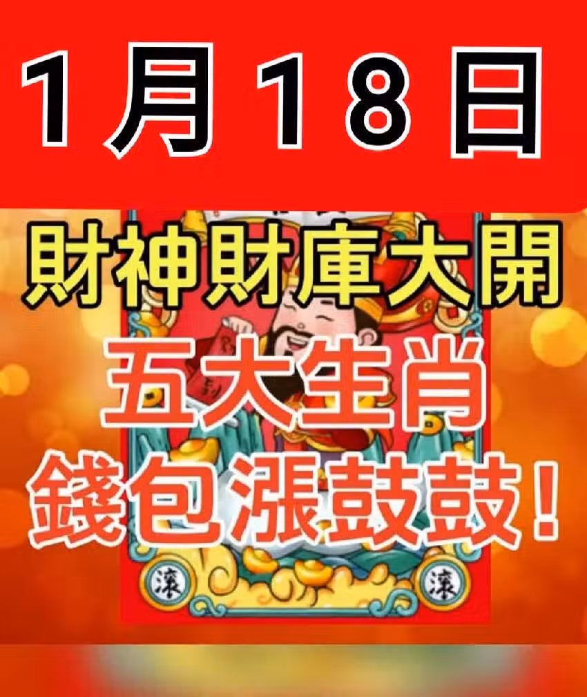 1月18日,財神財庫大開,五大生肖荷包漲鼓鼓!