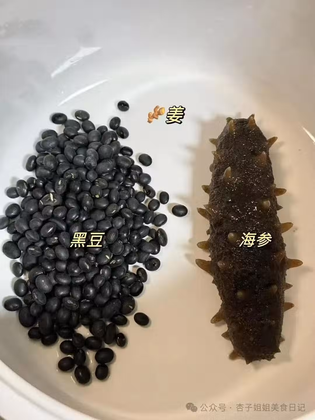 食材準備:黑豆小半碗、海參1條、姜兩片