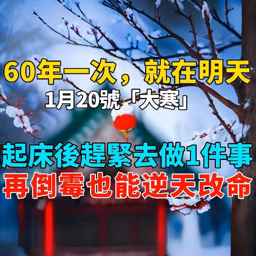 60年一次,就在明天!1月20號「大寒」,起床後趕緊去做1件事,再倒霉也能逆天改命!