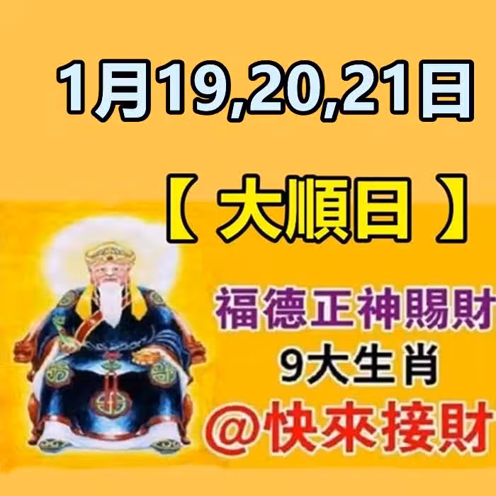 1月19,20,21大順日,福德正神賜財,九大生肖請接財