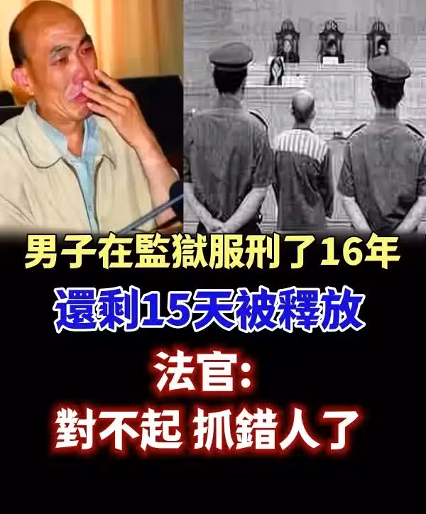 男子在監.獄服刑了16年, 還剩15天被釋放, 法官: 對不起, 抓錯人了