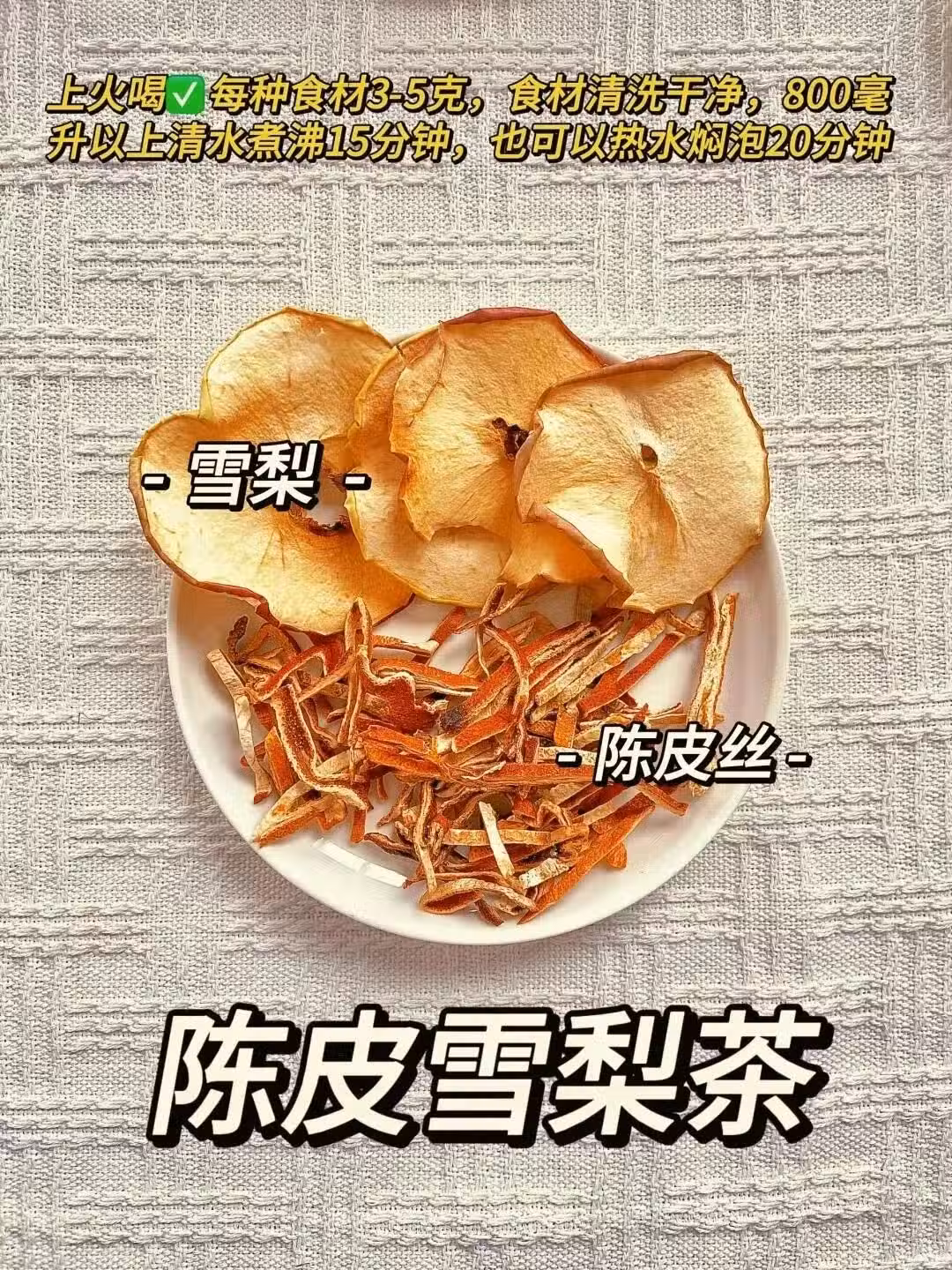 陳皮能理氣健脾、燥濕化痰,雪梨則清熱潤肺、止咳化痰。