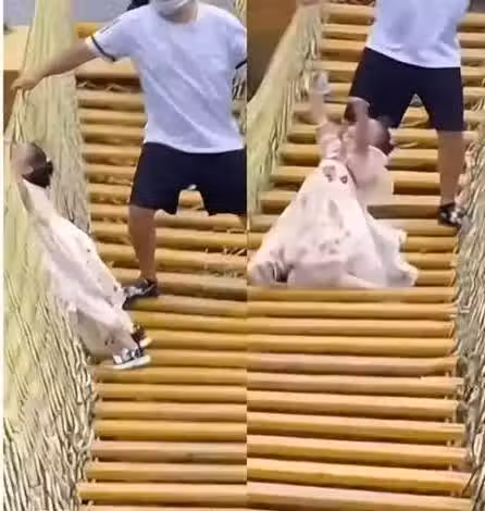 老爸死命搖晃吊橋!女兒嚇哭手一松「縫隙掉下去」結果悲劇了