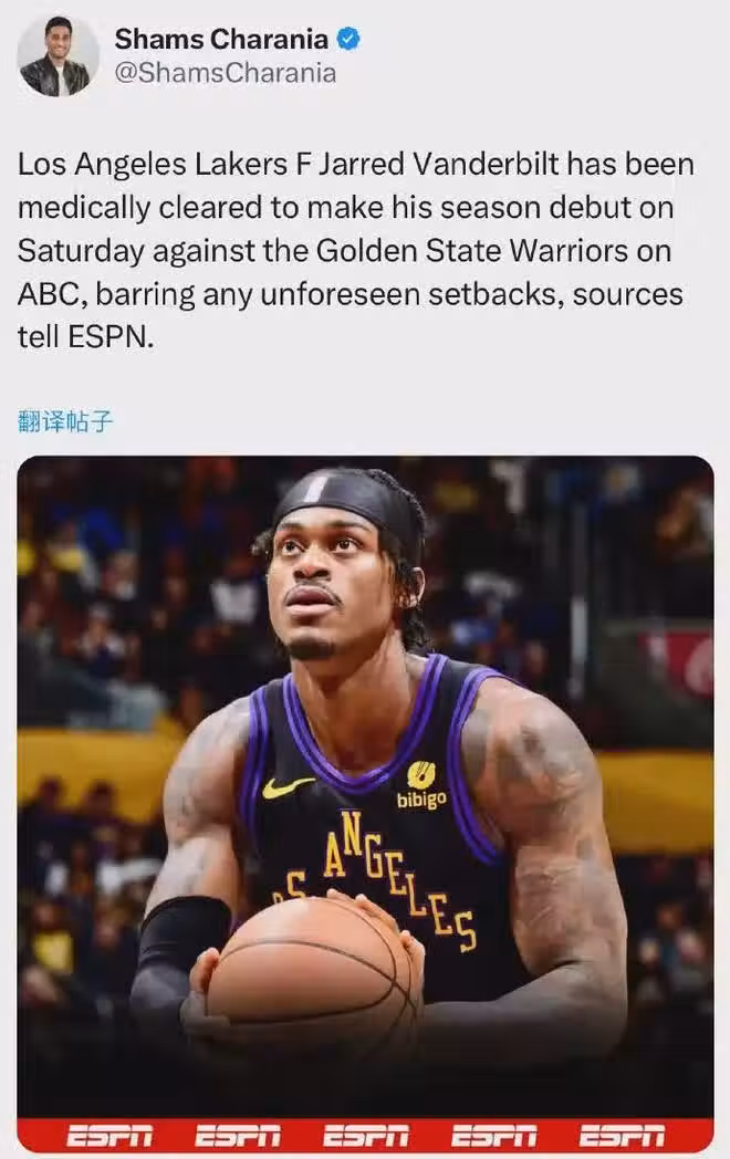 自去年2月初以來,范德彪就傷缺到現在,上賽季僅出戰29場比賽,場均上陣20分鐘得到5.2分4.8板1.2助1.2斷,投籃命中率51.8%,健康狀態下一直是湖人最為倚重的外線防守核心。