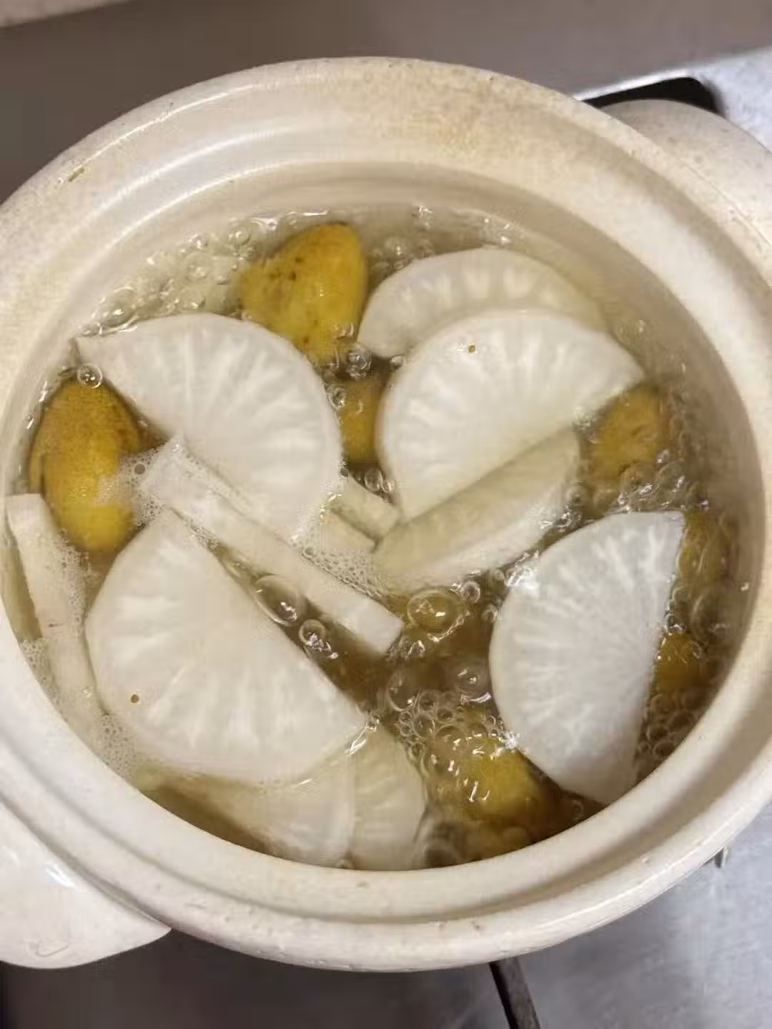 青橄欖6-10顆拍扁,手掌大小的白蘿蔔去皮切片