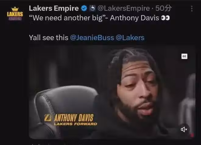 鬧了,鬧了!濃眉哥逼宮湖人交易!撩上NBA第一效率大中鋒