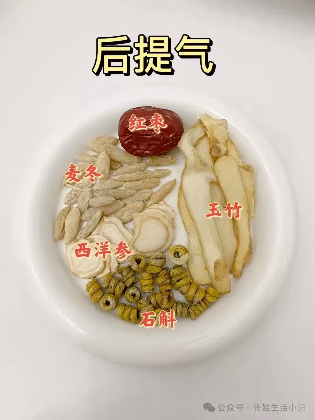 食材:黨參、黃芪、當歸、玉竹、麥冬、紅棗。