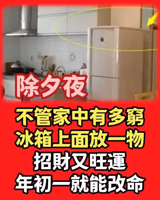 除夕夜不管家中有多窮,冰箱上面放一物,招財又旺運!大年初一就能改命!