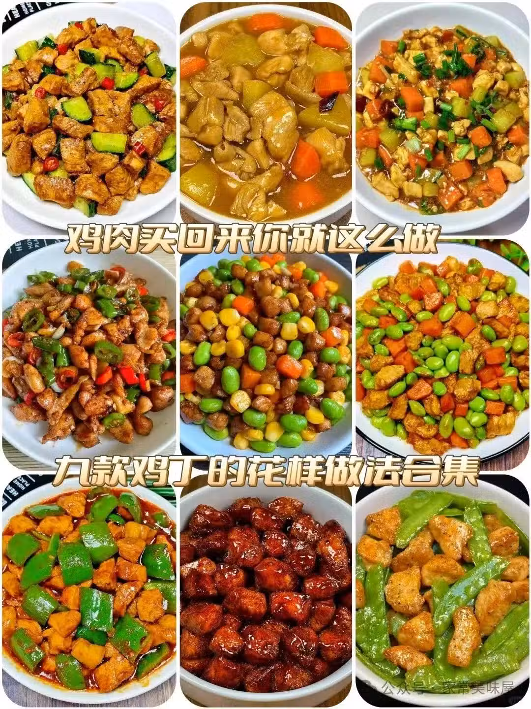 雞丁是一種非常受歡迎的料理方式,適合快速烹飪且容易吸收各種調味的特點。下面是九種不同風味的雞丁菜肴,每一種都有其獨特的味道和製作方法。