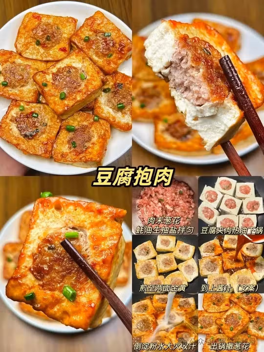 步驟一:豆腐切成大塊,挖空中間填入調味好的瘦肉末。