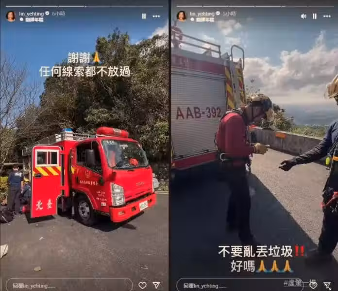 昨日林葉亭隨警消上山搜尋時,意外發現數包「腐肉」,讓她一度以為是有關於爸爸的噩耗,所幸經警方確認後發現只是遭人亂丟的垃圾,虛驚一場。