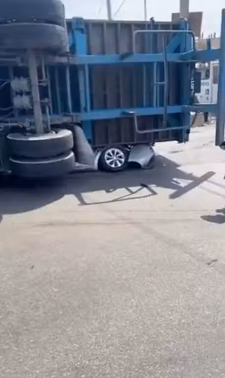 大貨車翻覆!一旁轎車「秒壓扁」,司機當場身亡「妻子趕赴現場哭斷腸」