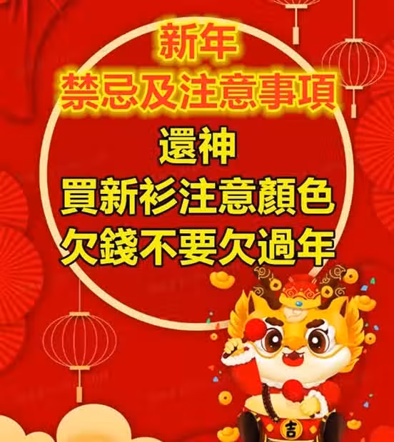 新年禁忌及注意事項︰還神、買新衫注意顏色、欠錢不要欠過年