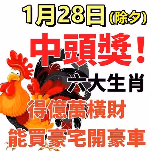 1月28日(除夕)中頭獎!得億萬橫財 ,能買豪宅開豪車的生肖!