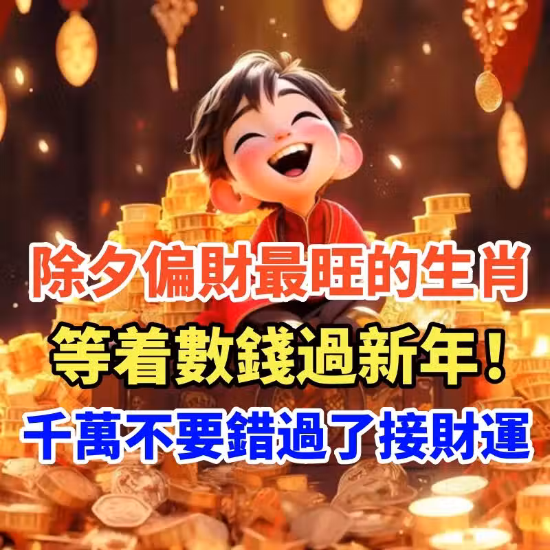 農曆新年將至,除夕夜可說是一年中最重要的日子。 這一天,不僅是家人團聚的時刻,更是財運翻倍的絕佳機會!而今年的除夕,特別有五大生肖的偏財運旺到爆棚,他們將迎來驚喜連連的橫財機會,數錢數到手軟,開啟富貴的一年!如果你或家人屬於牛、蛇、羊、龍或馬,這一天千萬不要錯過了接財運的好時機!