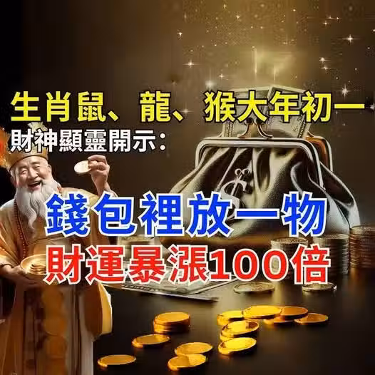 財神顯靈開示:生肖鼠、龍、猴大年初一,錢包里放一物,讓你財運暴漲100倍,財源滾滾來!