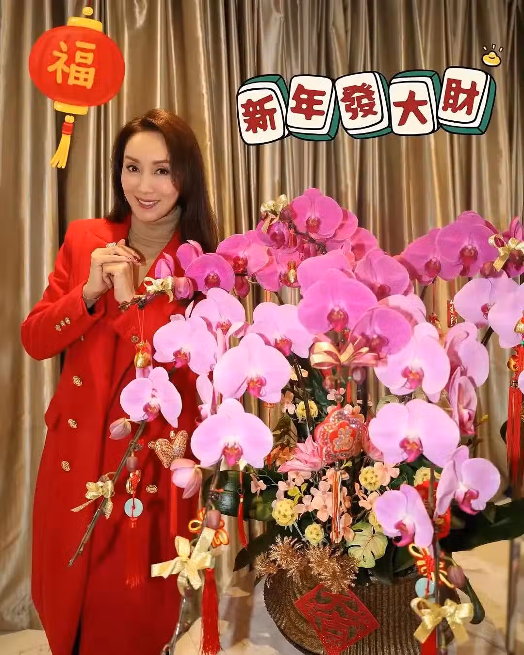 55歲郭可盈曬全家福拜年,一家三口同框溫馨有愛,15歲女兒像爸爸