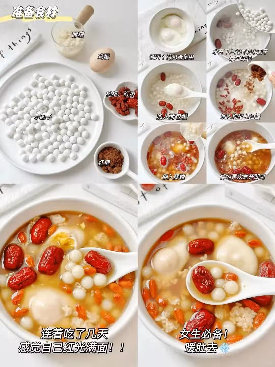 4️⃣當歸紅棗紅糖雞蛋 食材:當歸、桂圓、黃芪、枸杞、紅棗、雞蛋 …………………… ……………………
