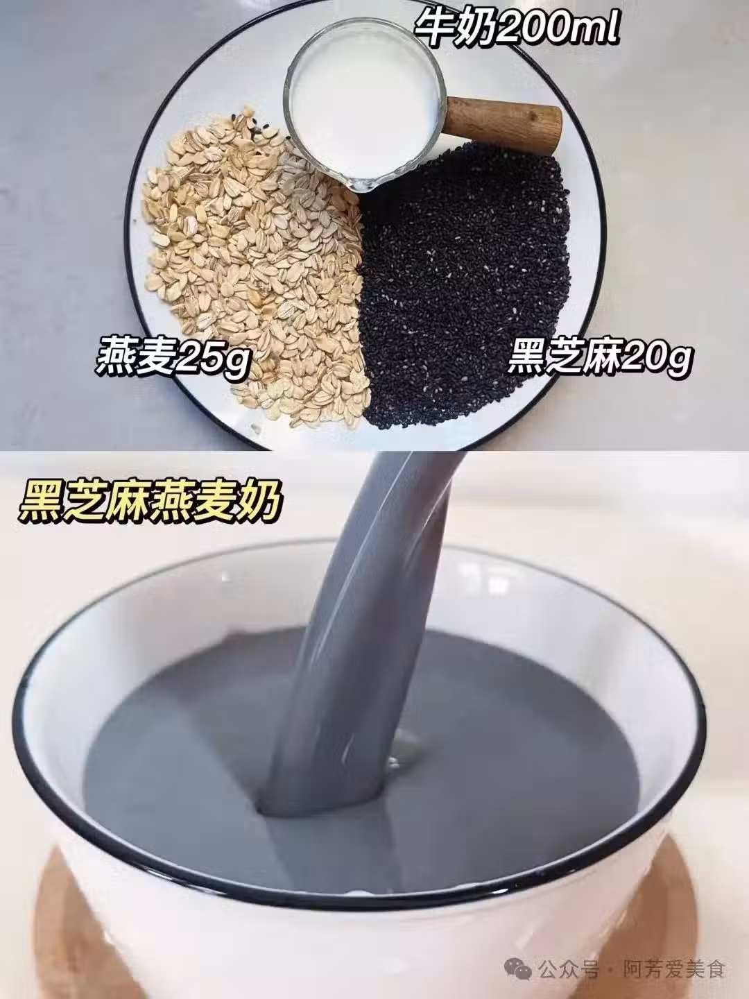 黑芝麻搭配燕麥再加入牛奶,非常適合上班和上學的寶子們喝燕麥的粗糧口感會非常的紮實,還扛餓,口感是非常的濃稠甜郁。