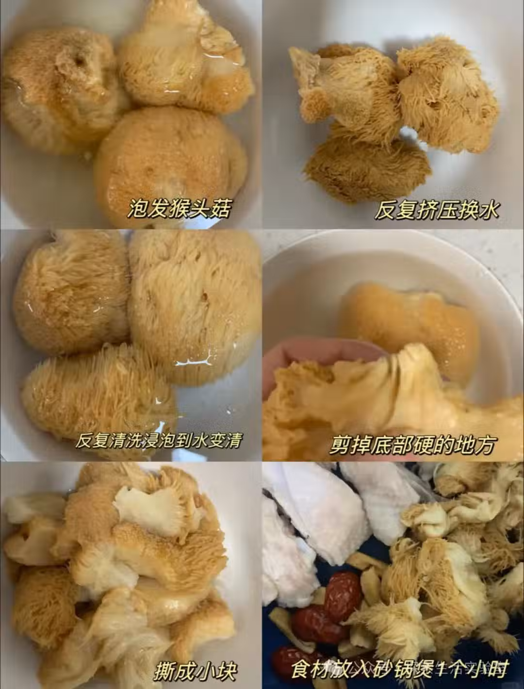 ②猴頭菇泡發時間要足夠,否則不易煮爛,影響口感。