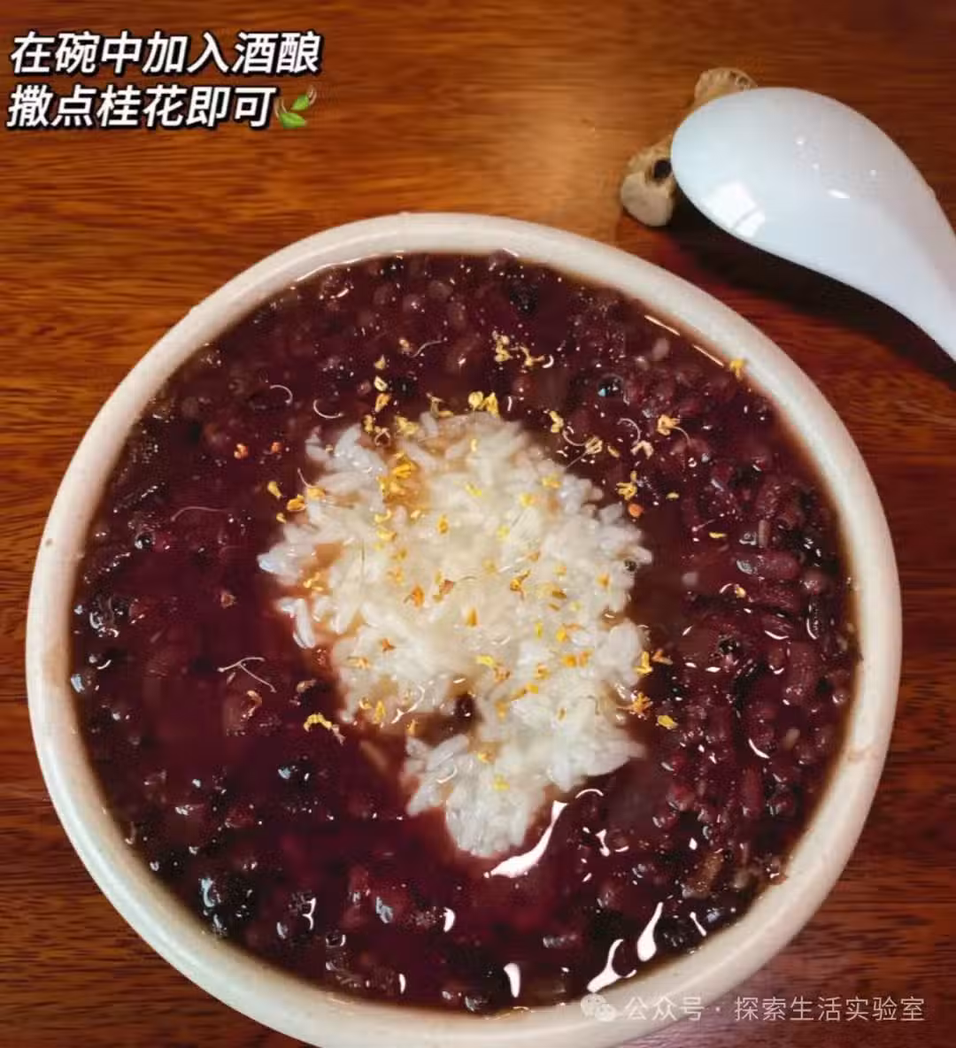 紅豆補血養心,酒釀能促進血液循環 這道湯品口感清甜,具有 「補血養顏,潤肺安神」 的功效哦~ 📒飲用小貼士: ①酒釀含有一定酒精成分,孕婦、哺乳期婦女及酒精過敏者不宜食用。 ②紅豆利尿,尿頻者不宜多吃,以免加重症狀。 03、蘋果小米紅棗羹