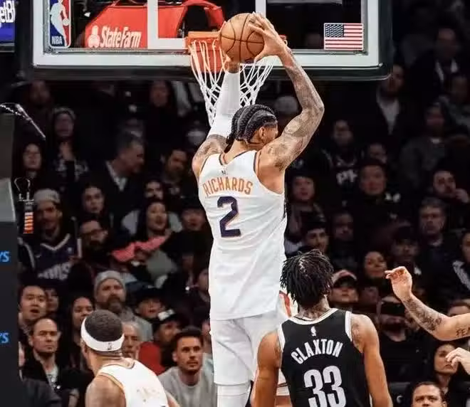 在加盟太陽後,首秀理查茲便轟下了21分11籃板,他似乎在用實際行動告訴其他球隊,猶猶豫豫,只會錯過他這麼一個優質的內線。而太陽也是撿到寶了,布登霍爾澤在理查茲首秀過後,便立刻將他放進首發陣容,截至目前,理查茲出戰7場,他不僅場均可以轟下11.5分11.0籃板0.9蓋帽的兩雙數據,更關鍵的是,太陽這7場球拿下了5場勝利。而且太陽還不乏客場戰勝快船、勇士,拿下了排名比自己高的對手,在直接對話的卡位戰當中取得關鍵的勝利。