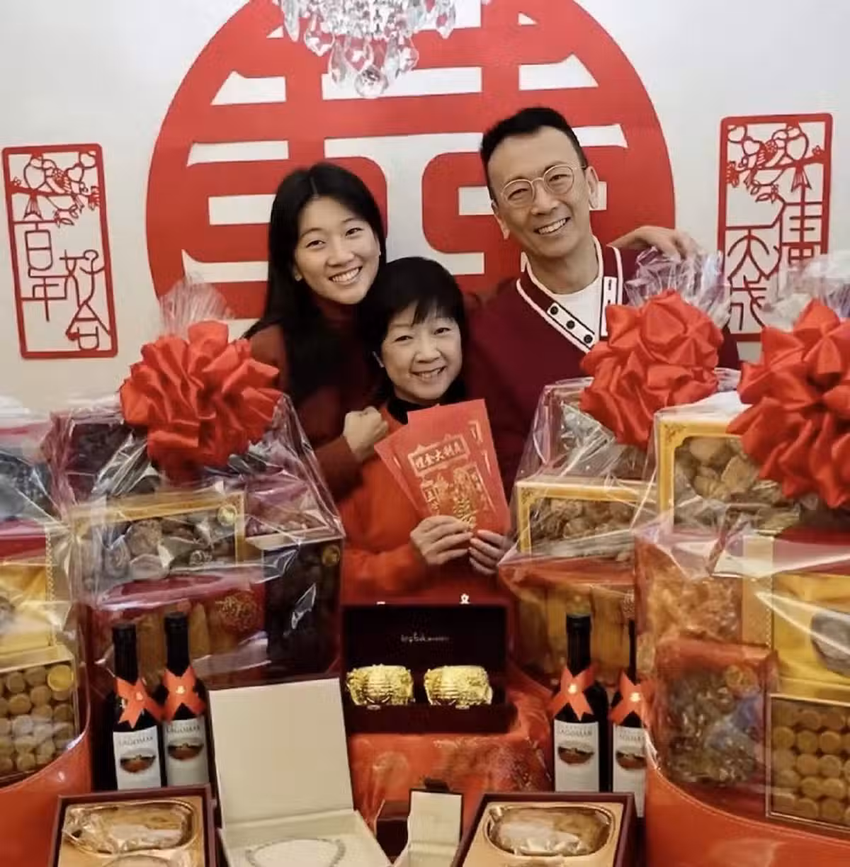 龍鳳鐲、大紅包還有各類海鮮都尤為搶鏡。看到女兒找到了自己的幸福,鄭丹瑞自然也是特別開心。