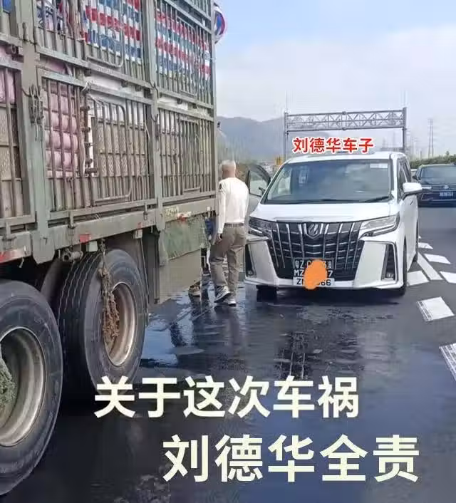貨車司機曬出現場畫面,劉德華坐的是一輛白色車子,一共有3個牌照。知情人透露這確實是劉德華的座駕,貨車司機也貼心的給車子打了碼。車子的駕駛艙門是關的,是副駕駛開門出來處理車禍。