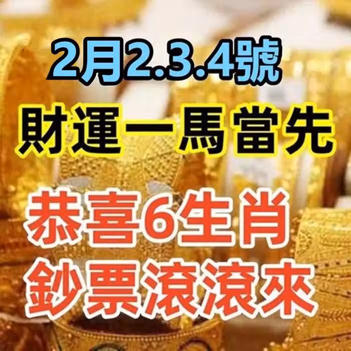 2月2.3.4號財運一馬當先,恭喜6生肖鈔票滾滾來!