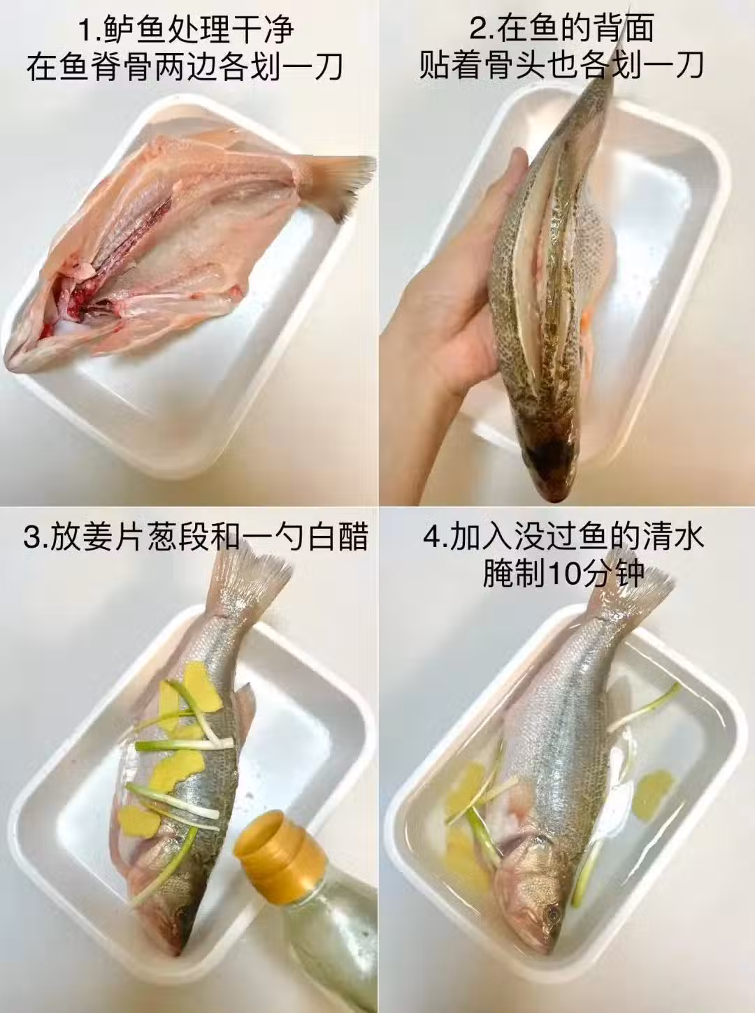 3、蔥姜辣椒(不吃辣可改為青椒)洗凈後切成細絲,放清水裡浸泡備用。 4、在蒸盤底部鋪上薑絲和蔥段,將腌制好的鱸魚放在上面,魚身上再鋪上少許薑片和蔥絲。在鱸魚上面均勻撒少許鹽。 5、鍋中加水燒開,將蒸盤放入蒸鍋中,大火蒸8分鐘燜2分鐘。 6、蒸熟後取出,倒掉盤中的湯汁,放入蔥姜辣椒絲(青椒絲),潑上少許熱油,倒入蒸魚豉油即可。