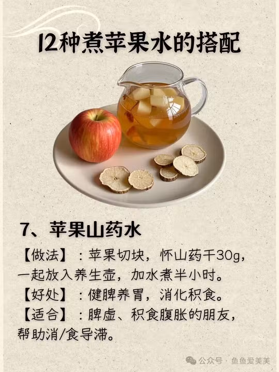八、蘋果菊花水 做法:蘋果切塊,放入鍋中,蘋果煮軟後加入3-5朵菊花泡幾分鐘。 好處:清熱降火,明目益智。 適合:用眼過度,眼睛乾澀的人。