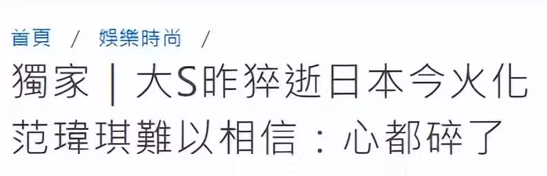 據悉,大S在17歲時出道,從藝31年從紅不衰,即便淡出演藝圈,但還是屢次登上熱搜,除了她的感情生活,大S的身體狀況也一直是個話題,與汪小菲結婚期間曾兩度流產,先後患上憂鬱症並發厭食症、癲癇等疾病,也被診斷出有二尖瓣脫垂症。