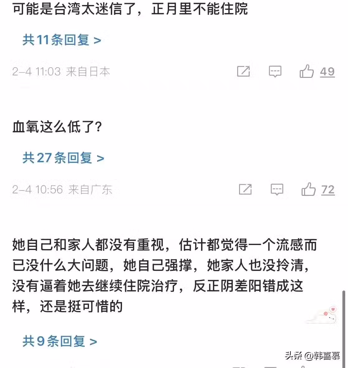 2月2日,小S和她媽媽還分享了一段跳舞的視頻,兩人在酒店的房間,大S並沒有在現場。這個時候,她的身體應該嚴重不適,但依然固執的認為能挺過去。