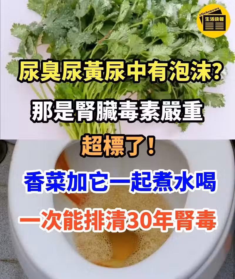 尿臭尿黃尿中有泡沫?那是腎臟毒素嚴重超標了! 香菜加它一起煮水喝,一次就能排清30年腎毒,讓你腎臟年輕30歲