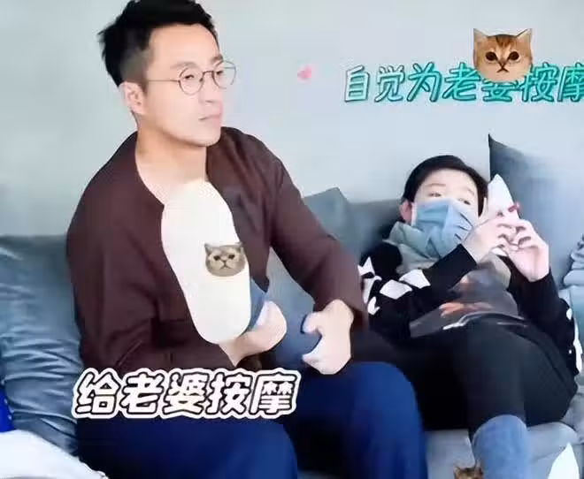兩人相處時,汪小菲會撫摸著大 S 的頭,會自覺地給躺在沙發上的她按摩。