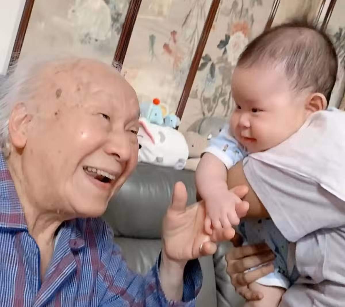 在2020年的時候,港媒還特意報道過,俞明再度升級做太姥爺的新聞。當時他拉著才出生的寶寶,一臉的寵溺。畫面看上去非常溫馨,那個時候俞明也已經96歲了。