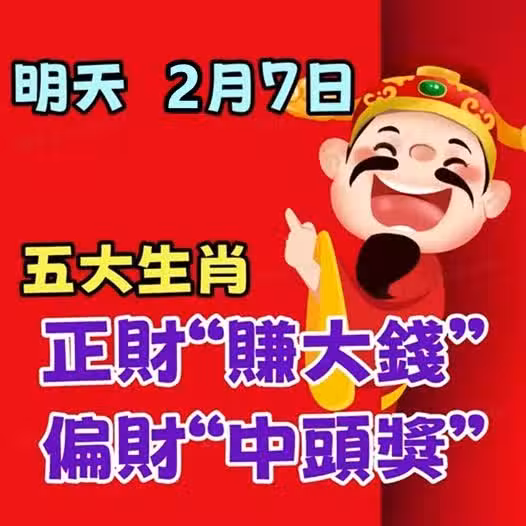 明天2月7日,五大生肖正財「賺大錢」,偏財「中頭獎」