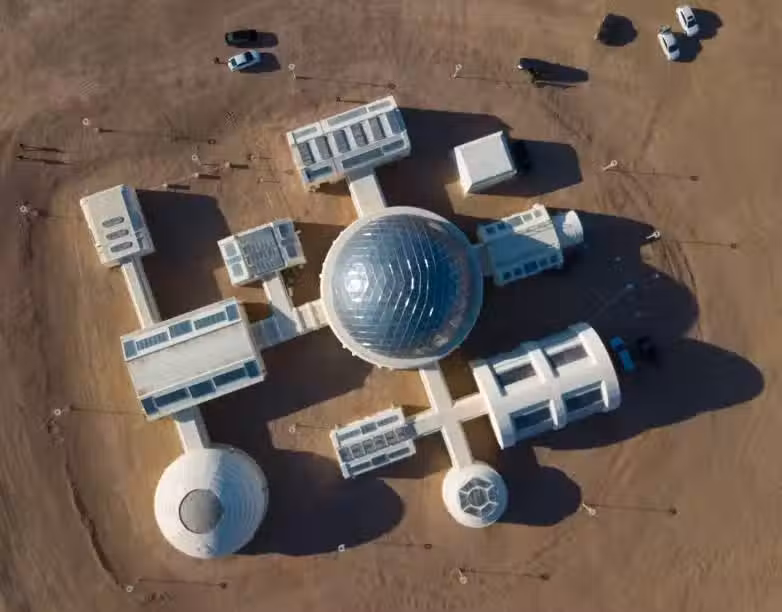 所以我們就想過在火星表面上建造封閉居住地,就是我們常在圖片上看到的那種帶有未來科技感的圓頂基地。