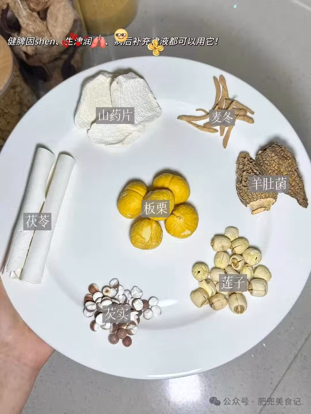 山藥片、蓮子、芡實、茯苓、太子參、板栗、羊肚菌、瘦肉