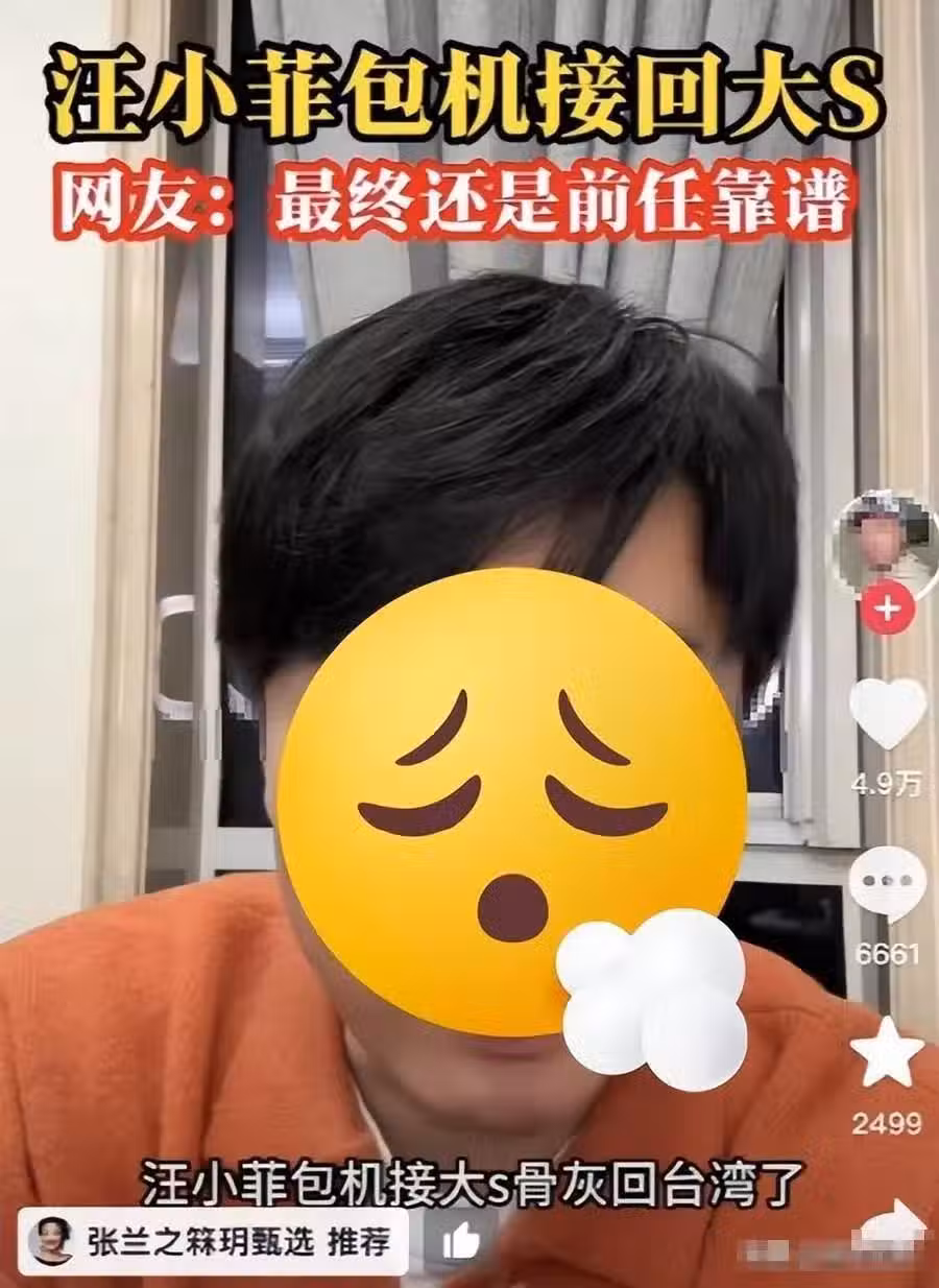 如果只是娛樂博主的傳聞,倒也罷了,在這個節骨眼上小S也不會多說什麼,也沒有精力和心情去解釋,但讓人想不到的是,汪小菲的母親張蘭居然用直播小號「推薦」了博主的視訊,這就讓外界覺得真的是汪小菲包機接回了大S,還是前任汪小菲靠譜。